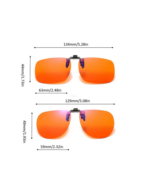 Clip Lunettes avec filtres des lumières bleues qui bloquent la mélatonine et fatiguent la rétine . Effets reposants et protecteurs de votre vision .