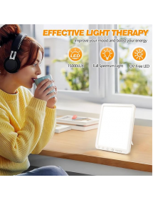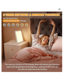 Lampe de Luminothérapie 15000 lux, Lampe à Lumière du Jour Compacte avec Support, Sans UV, 3 Températures de Couleur, 5 Niveaux de Luminosité, 6 Minuteries, Fonction Mémoire, pour Bureau Maison [Classe énergétique A]