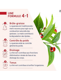 BRÛLE-GRAISSE : le guarana est traditionnellement reconnu pour agir sur la combustion naturelle des graisses. Le maté contribue à la dégradation des lipides.