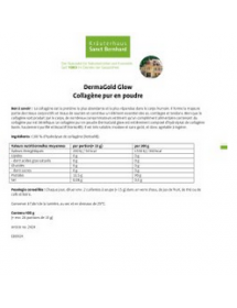 Le collagène est la protéine la plus abondante et la plus répandue dans le corps humain. Il forme la majeure partie des tissus conjonctifs et tissus de soutien et constitue un élément essentiel des os, cartilages et tendons. Bien que le collagène soit produit par le corps, de nombreux consommateurs estiment qu'un complément alimentaire contenant du collagène pur est bénéfique. Le collagène pur en poudre DermaGold glow est entièrement composé d'hydrolysat de collagène bovin, hautement purifié et bioactif (Verisol®). Il est très soluble, inodore et sans goût, et donc agréable à ingérer.